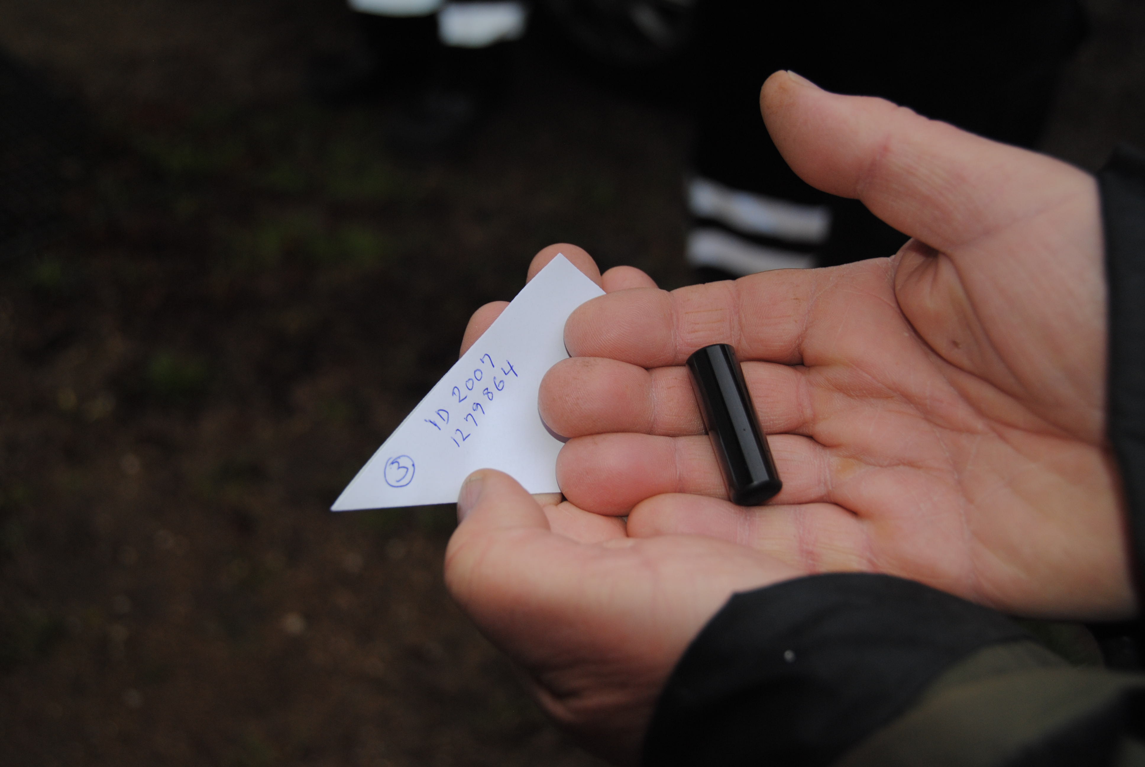 Im Roskildefjord wurden Mefo mit Sendern ausgestatte.Diese befinden sich in der Bauchhøle und sehen so aus