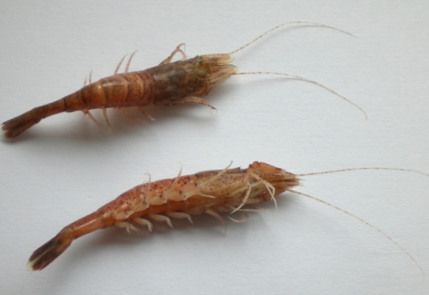 Eine von zahlreichen Arten. Lebt bodennah, kann aber auch gut schwimmen. Hauptsächlich abends aktiv auf sandigem und steinigem Grund, Mischgrund mit Tang. Normale Körperfärbung Grau bis Braun, deutliche farbige Segmentierung. Diese hier sind ohne Fühler 6 cm lang.